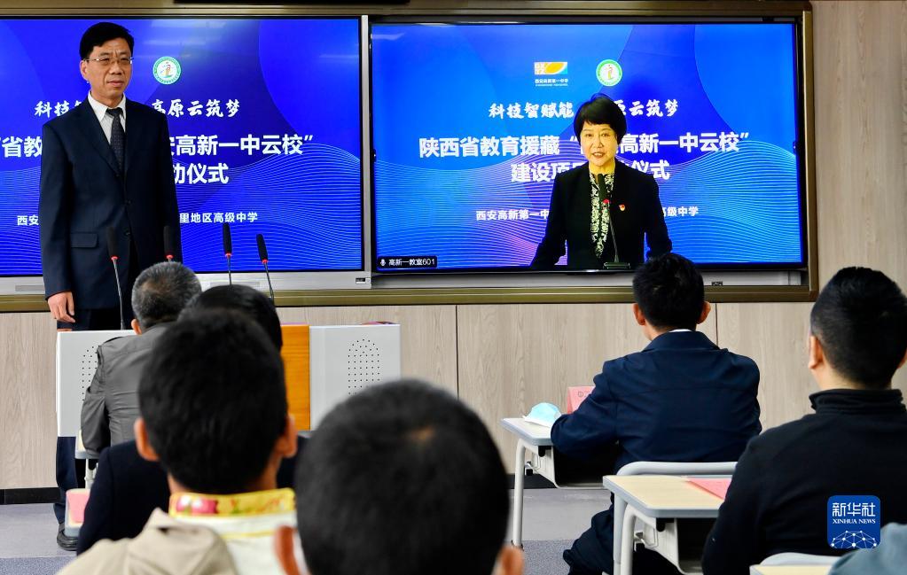 當日,陜西省教育援藏“云?!苯ㄔO(shè)項目正式啟動。陜西省西安高新第一中學和西藏拉薩阿里地區(qū)高級中學結(jié)成“對子”,借助5G網(wǎng)絡開展教學教研互動,助力提升教育水平。