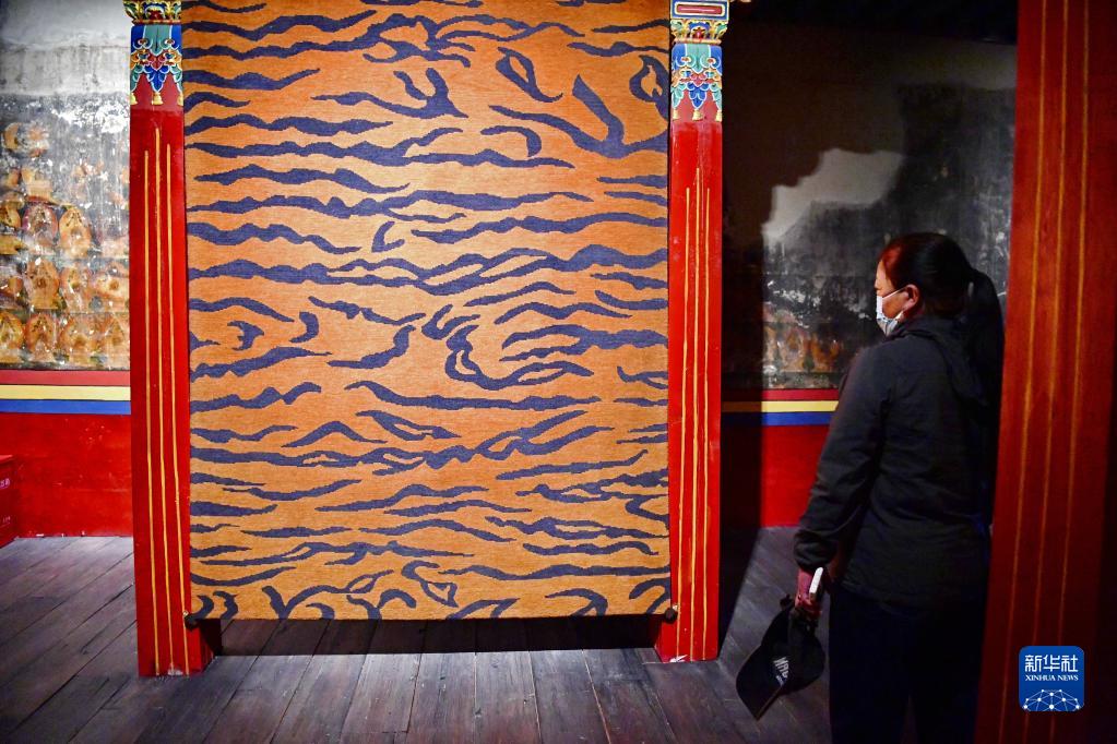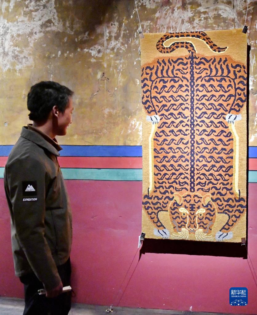 當日,名為“智慧和無畏”的“虎毯”展覽在拉薩吉本崗藝術(shù)中心展出。西藏的非遺工作者根據(jù)古代藏毯藏品重新挖掘,整理了以“虎”為主題的圖案,設計制作了本次展覽作品。本次展覽展出20余件各具特色的藏毯藝術(shù)作品,展覽將持續(xù)到5月初。