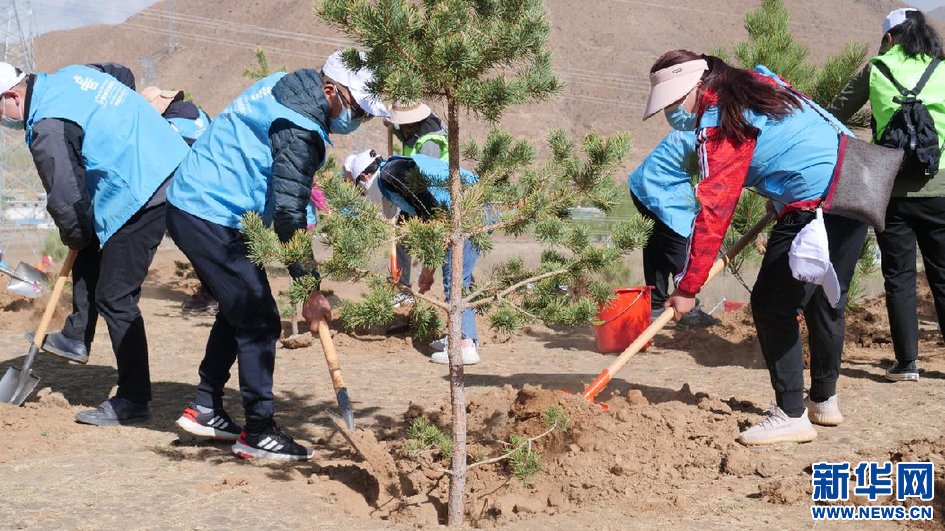 圖為植樹(shù)活動(dòng)現(xiàn)場(chǎng)(4月16日攝)。新華網(wǎng)發(fā) 貢桑央吉(實(shí)習(xí)生)攝