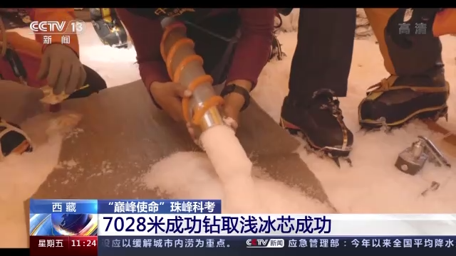 4月28日夜里,三根來自珠峰海拔7028米處的淺冰芯已被送到了珠峰大本營。
