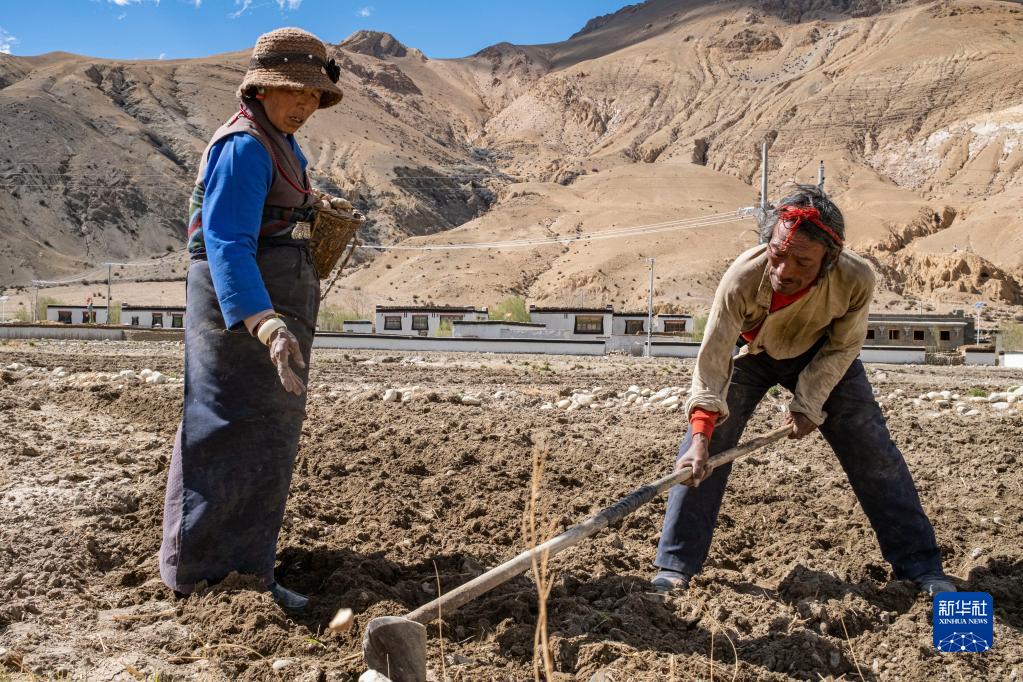 西藏定日縣扎西宗鄉(xiāng)日白拉新村的村民在做播種前的準(zhǔn)備(5月10日攝)。新華社記者 姜帆 攝