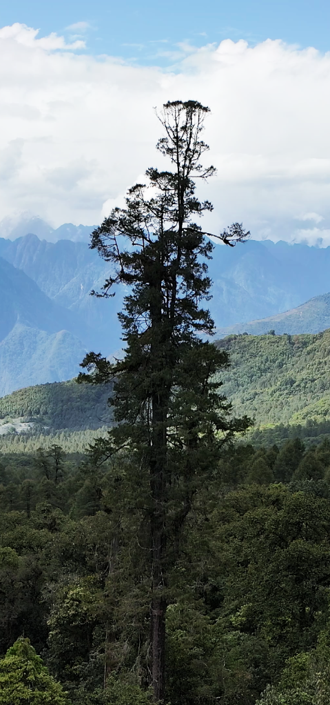 墨脫位于西藏東南部,地處雅魯藏布江下游,擁有豐富的生物多樣性和廣闊的原始森林。不丹松主要分布在海拔1400米至2500米的山地雨林與亞熱帶氣候區(qū),要測量樹高難度很大。