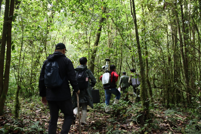 圖為測量團(tuán)隊進(jìn)入森林腹地進(jìn)行實地測量。(受訪者供圖)