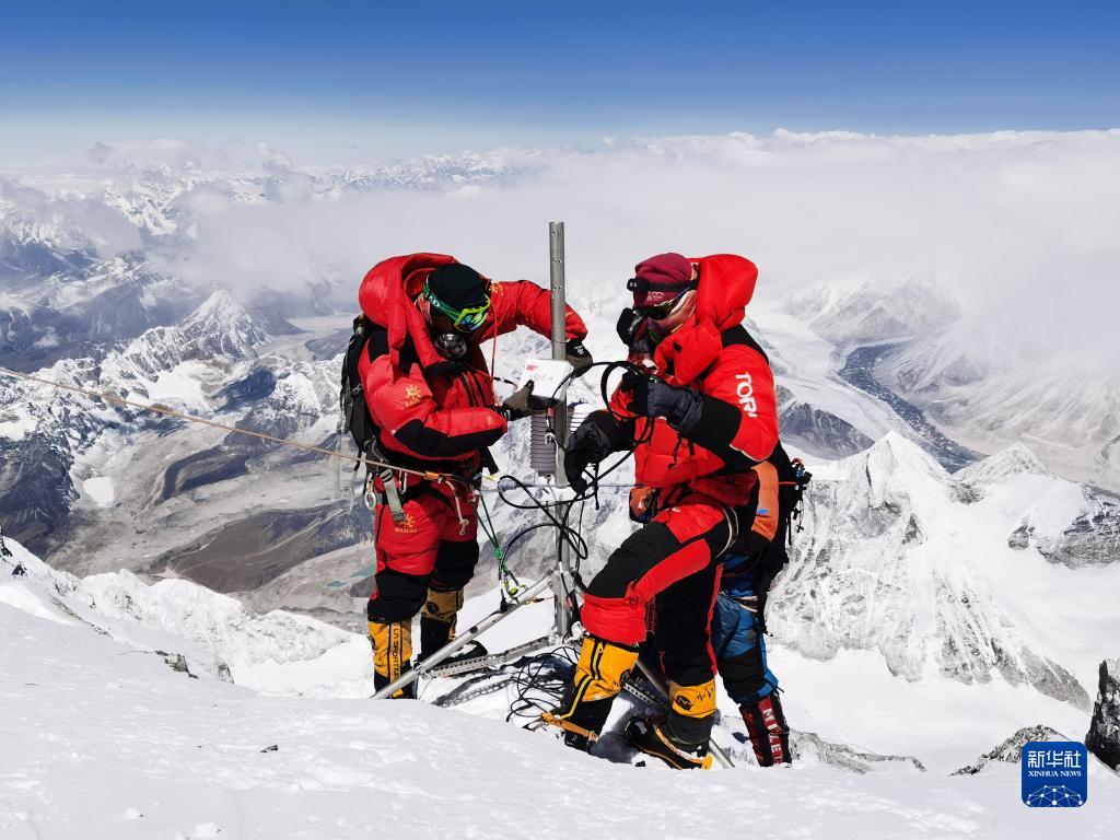 5月4日,德慶歐珠帶領(lǐng)的登頂小組科考隊(duì)員,在珠峰海拔8830米處架設(shè)世界海拔最高自動(dòng)氣象站,建成珠峰梯度氣象觀測(cè)體系;在峰頂首次利用高精度雷達(dá)測(cè)量冰雪厚度,并采集了峰頂冰雪樣品。