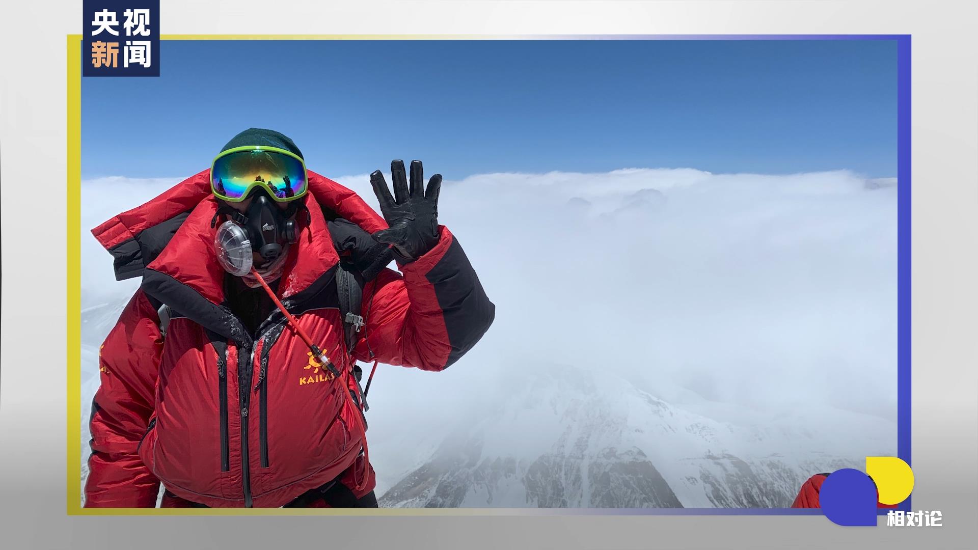 5月4日登頂、完成科考任務后,德慶歐珠左手比了一個“五”,這是他的第五次登頂。