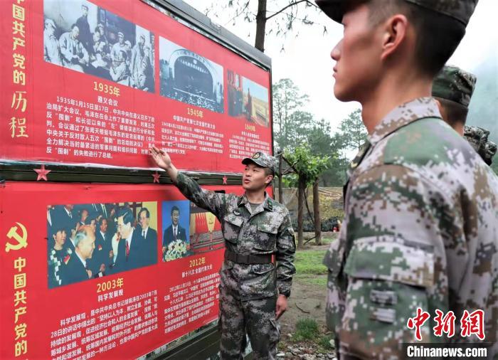 圖為官兵介紹中國共產黨黨史?!『聜?攝