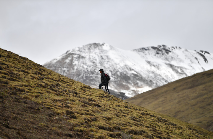 沿著陡峭山坡,攀至海拔超過4700米的地方,才能來到冬蟲夏草藏身的草甸。一條腿彎曲、一條腿伸直、手肘支撐、俯身低頭,高原上的村民就這樣以擁抱大地的姿態(tài),搜尋著隱藏其中的暗棕色芽尖——冬蟲夏草。剛剛將蟲草挖出,采挖蟲草的牧民就拿起鋤頭用鈍頭輕敲地面,把掀開的土壤回填到原位——他們用這樣簡(jiǎn)單而樸實(shí)的方式保護(hù)著大自然的饋贈(zèng),為來年冬蟲夏草的生長(zhǎng)打好基礎(chǔ)。
