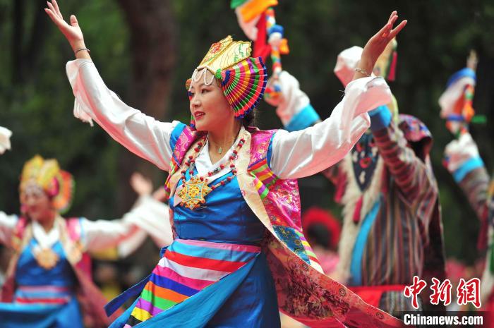 圖為舞蹈堆諧表演。 貢嘎來松 攝