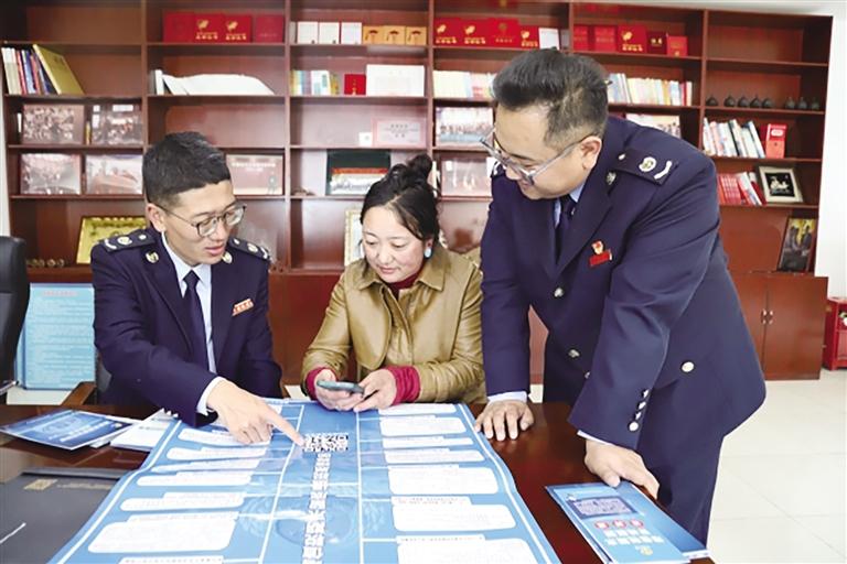 稅務(wù)工作人員為納稅人講解政策。 圖由 西藏自治區(qū)稅務(wù)局 提供