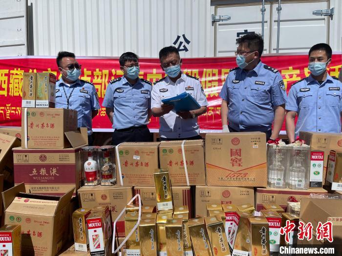 23日,西藏自治區(qū)公安廳經(jīng)偵總隊銷毀案值100余萬元(人民幣,下同)高檔名貴假酒。