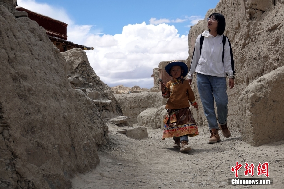 8月4日,西藏自治區(qū)阿里地區(qū)札達(dá)縣,執(zhí)行2022年夏季科考任務(wù)的中國第二次青藏高原綜合科學(xué)考察研究(青藏科考)“人類活動(dòng)歷史及其影響”分隊(duì),在古格王朝(966年-1630年)都城遺址實(shí)地考察調(diào)研。據(jù)了解,古格王朝都城遺址總面積達(dá)75萬平方米,海拔約3900米,現(xiàn)有窯洞、碉堡、白塔等各類建筑遺跡共1416處,整個(gè)建筑規(guī)模宏大,布局嚴(yán)謹(jǐn),氣勢(shì)宏偉,1961年被列為國家級(jí)首批重點(diǎn)文物保護(hù)單位。圖為一對(duì)母子游客在遺址頂端參觀。 中新社記者 孫自法 攝