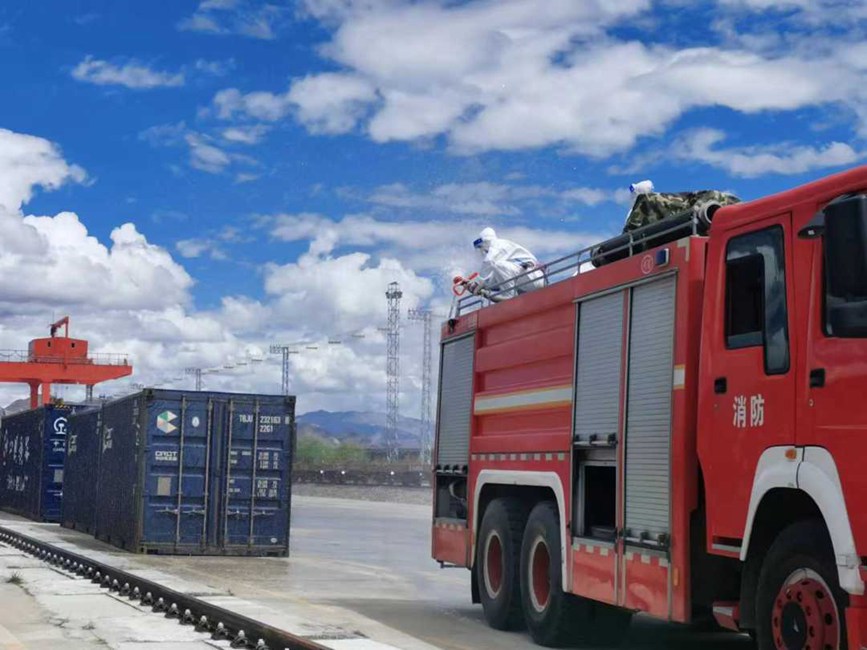 拉薩西站聯(lián)系堆龍德慶區(qū)乃瓊街道防疫部門組織堆龍消殺隊(duì),對(duì)拉薩西站東門區(qū)域、中風(fēng)險(xiǎn)區(qū)宏順裝卸宿舍樓內(nèi)及大門進(jìn)行專業(yè)、全面、系統(tǒng)性消殺;日喀則站聯(lián)系市疫情防控部門消殺組,對(duì)林瑞達(dá)裝卸隊(duì)院內(nèi)、貨運(yùn)職工、裝卸隊(duì)住宿樓進(jìn)行;那曲站聯(lián)系市消防部門對(duì)車站、站臺(tái)、貨場等重要場所進(jìn)行專業(yè)、全面、系統(tǒng)性消殺。