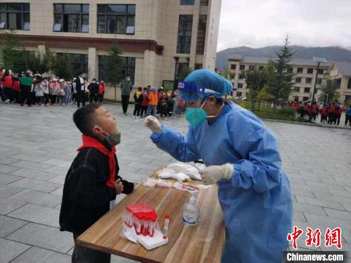 圖為林芝一小學(xué),開學(xué)當天學(xué)生接受核酸檢測。林芝市教育局供圖