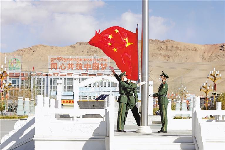 圖為阿里地區(qū)舉行慶祝中華人民共和國(guó)成立73周年“升國(guó)旗、唱國(guó)歌”儀式。次仁桑珠 攝