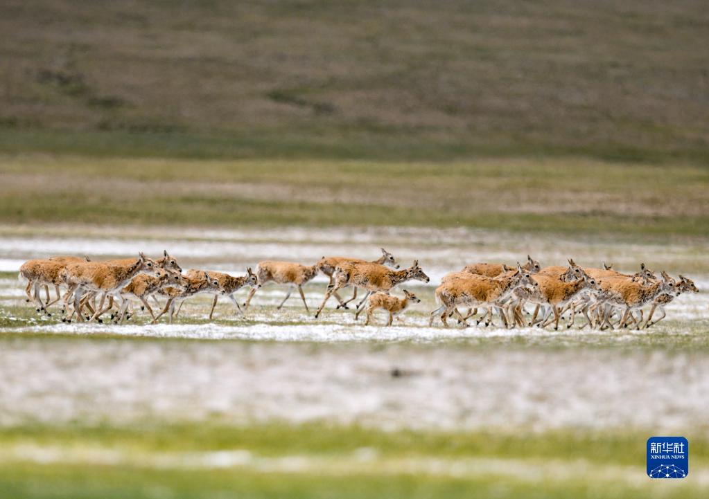 這是在羌塘國(guó)家級(jí)自然保護(hù)區(qū)內(nèi)拍攝的藏羚羊(2022年7月11日攝)。新華社記者 晉美多吉 攝