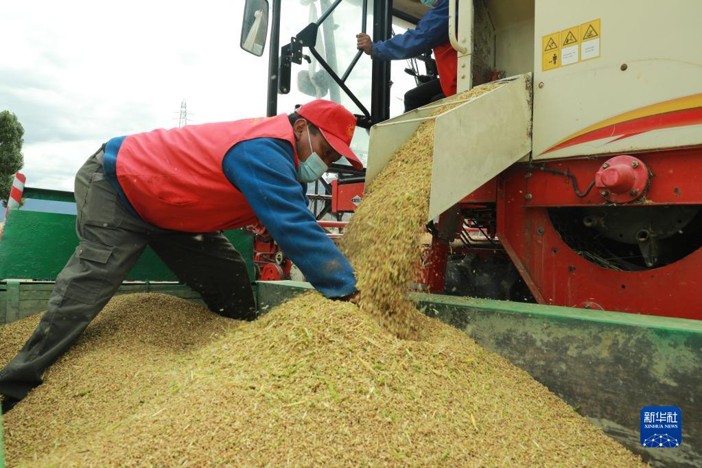 西藏拉薩市墨竹工卡縣唐加鄉(xiāng)農(nóng)民收獲青稞(8月27日攝)。新華社發(fā)(洛克攝)