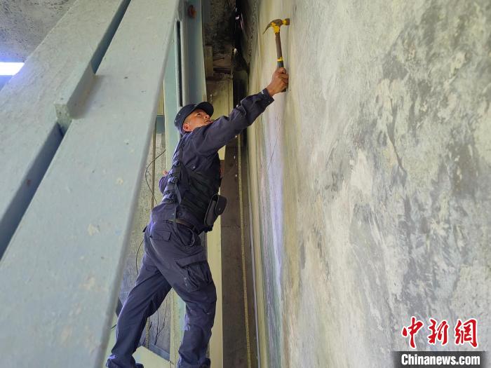 圖為墨脫邊境管理大隊民警正在檢查橋梁受損情況?!罟怙w 攝