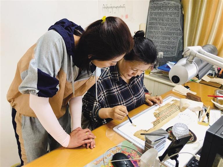 2015年自治區(qū)古籍修復中心成立以來,在國家圖書館和云南省圖書館等專業(yè)修復中心接受培訓實踐的修復人員積極投入到藏文古籍修復工作中,相繼完成了拉薩市墨竹工卡縣芒熱寺破損古籍的修復任務,修復古籍文獻共248葉,拍攝建檔496幅圖片,并把這部分完成修復的古籍文獻同目錄按正規(guī)程序移交給寺廟。完成了對山南市隆子縣加玉鄉(xiāng)強慶村白嘎寺的237函、3萬多葉的珍貴古籍文獻的整理、建檔和拍攝書影等工作。同時啟動了7000多葉破損古籍的修復工作,截至目前已完成4420葉破損古籍的修復,為進一步做好傳統(tǒng)古籍文獻的再利用和原生性保護給予了有力保障。