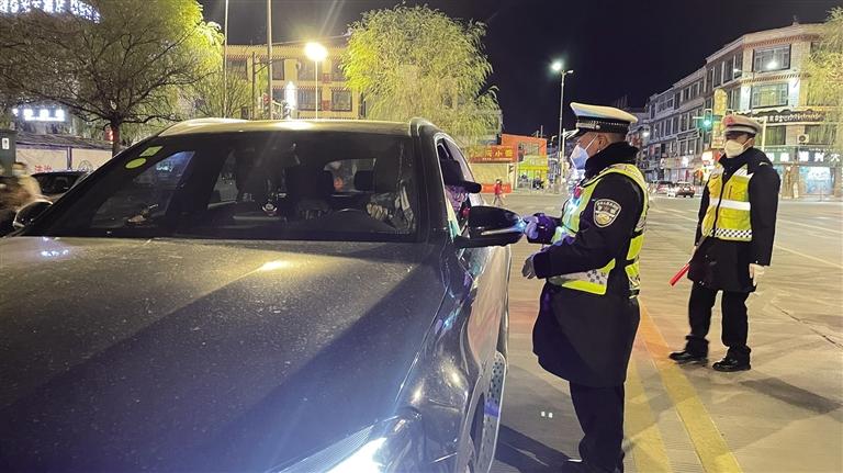 拉薩冬日的夜晚寒風(fēng)凜冽。夜色中,一輛輛汽車有序通行,街道又恢復(fù)了往日的熱鬧。當(dāng)天晚上9時(shí)許,記者跟隨拉薩市公安局交警支隊(duì)執(zhí)法監(jiān)督大隊(duì)民警前往江蘇大道,城南大隊(duì)的民警已經(jīng)設(shè)置好路障、標(biāo)牌,正在對(duì)過(guò)往車輛逐一進(jìn)行詳細(xì)排查。“您好,請(qǐng)出示駕照。”“您好,請(qǐng)吹氣?!痹诿窬闹笓]下,車輛有序通過(guò)檢查點(diǎn)。市民扎西多吉駕車經(jīng)過(guò)檢查點(diǎn)后告訴記者,在這么冷的天氣里,交警依然堅(jiān)守在路面上,確實(shí)令人敬佩,應(yīng)該為他們點(diǎn)贊。“我會(huì)牢記‘開(kāi)車不喝酒,喝酒不開(kāi)車’,也會(huì)自覺(jué)遵守交通法律法規(guī),文明出行?!痹鞫嗉f(shuō)。