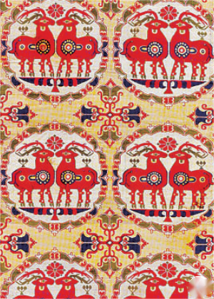 青藏高原北部絲綢之路沿線(xiàn)出土的吐蕃時(shí)期中亞風(fēng)格的絲綢。瑞士阿拜格基金會(huì)供圖