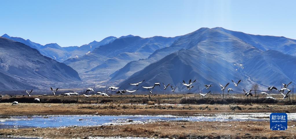 唐嘎鄉(xiāng)位于拉薩市達(dá)孜區(qū)東北部,這里每年冬季都會迎來黑頸鶴、斑頭雁、赤麻鴨等候鳥。這些珍稀鳥類時而在空中盤旋,時而棲息在水邊,營造出一幅生機(jī)盎然的冬季畫卷。