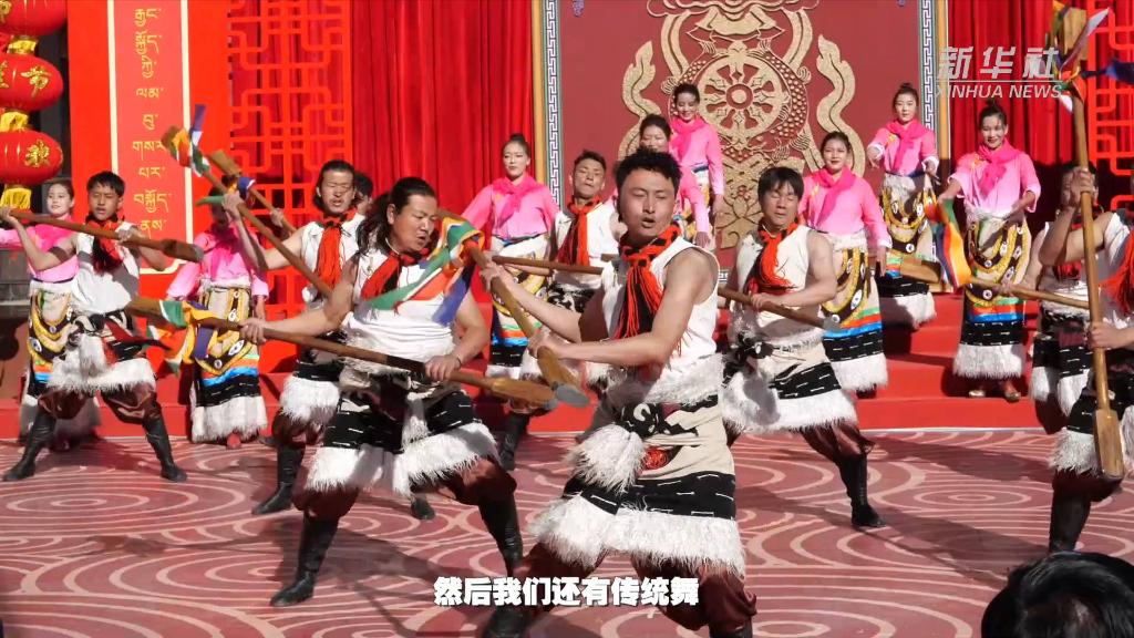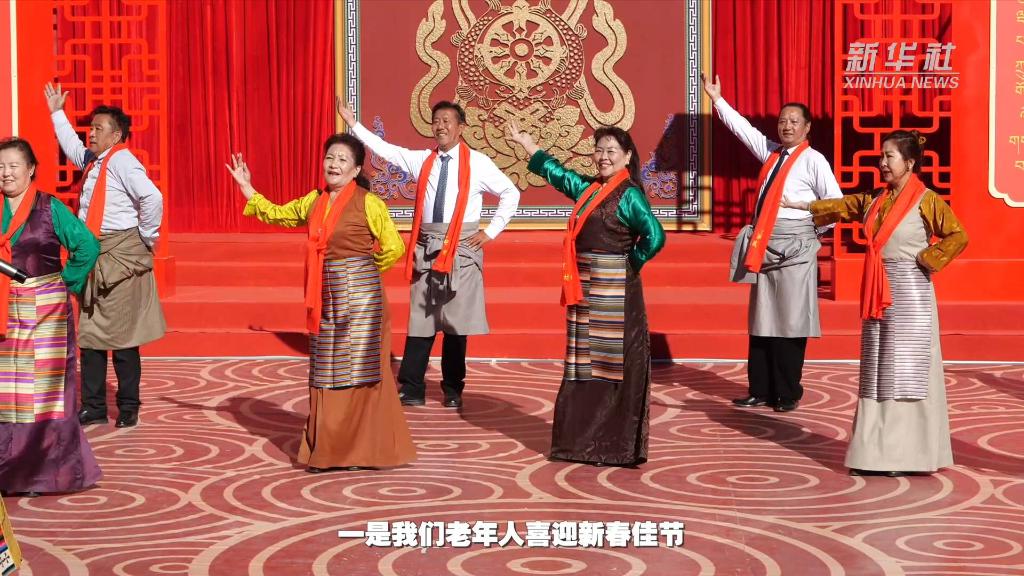 農(nóng)歷癸卯兔年春節(jié)大年初一,西藏拉薩市娘熱街道吉蘇4組的村民們身著節(jié)日盛裝,在家門(mén)口觀(guān)看娘熱民間藝術(shù)團(tuán)演繹的2023年西藏“啟航新征程 幸福中國(guó)年”村晚。
