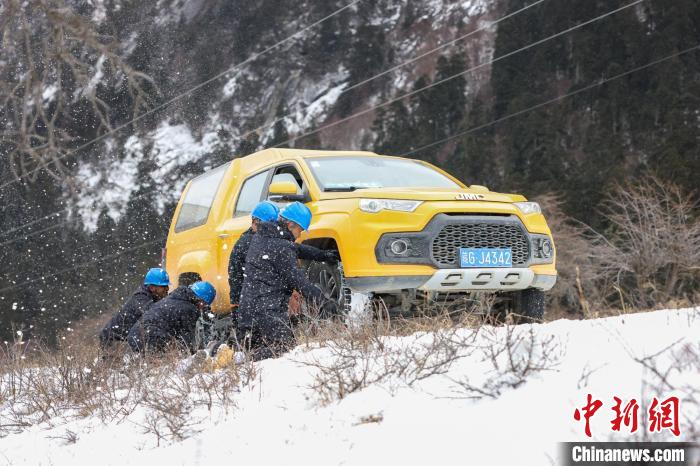 盤(pán)山公路上,積雪和暗冰使車(chē)輛打滑無(wú)法繼續(xù)前行,羅布頓珠和隊(duì)友只好下車(chē),給車(chē)輛掛好防滑鏈繼續(xù)前行,原本兩個(gè)小時(shí)的車(chē)程,這次花了4個(gè)小時(shí)才抵達(dá)巡線點(diǎn)。