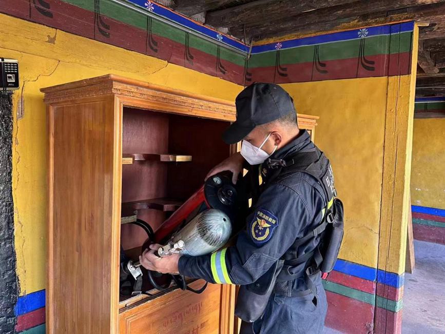 圖為檢查消防設備。圖片由布達拉宮消防救援大隊提供