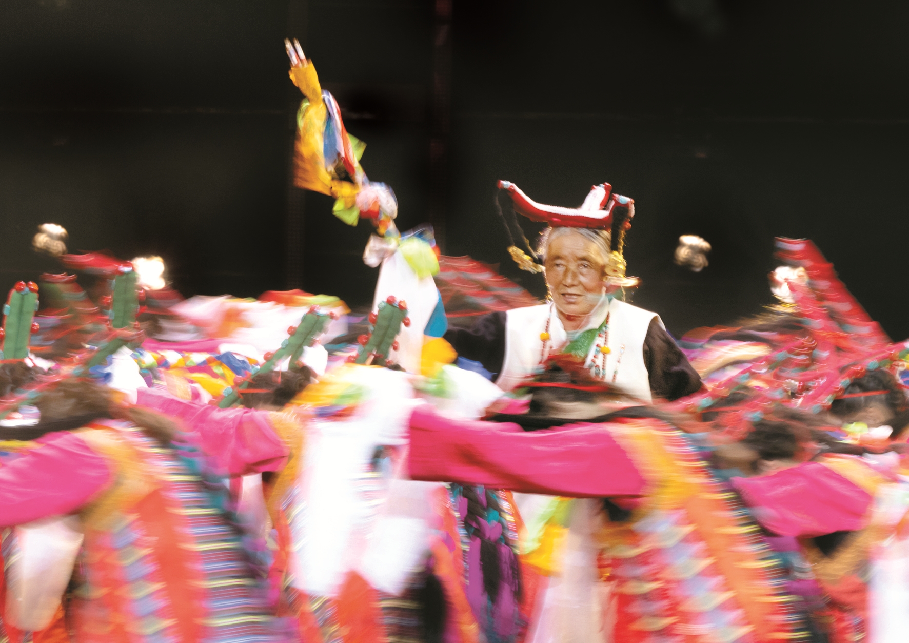 “諧欽”是西藏傳統(tǒng)歌舞節(jié)目,歷史悠久,深受廣大群眾喜愛。編導(dǎo)吳金曲珍介紹說:“這個(gè)節(jié)目是根據(jù)熱堆村的一個(gè)原生態(tài)舞種改編而成的,里面表現(xiàn)的是豐收的喜悅和對(duì)家鄉(xiāng)景色的贊美,節(jié)目中表演的34名演員包括一位老阿媽在內(nèi),都是群眾。”