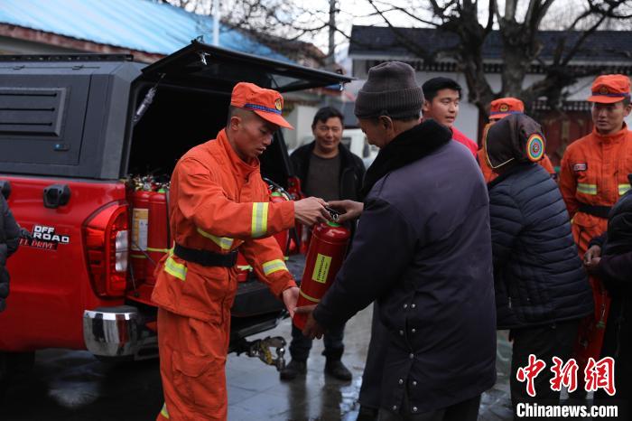 該中隊為每家每戶配發(fā)干粉滅火器。西繞拉翁 攝