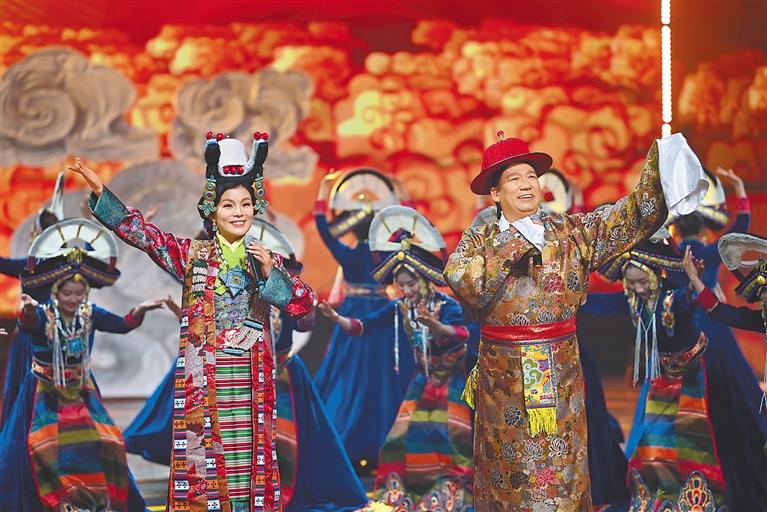 2023年藏歷水兔新年聯(lián)歡晚會于2月20日晚在拉薩舉行。這是西藏廣播電視臺首次實(shí)現(xiàn)高清直播藏晚。圖為晚會現(xiàn)場。記者 旦增西旦 攝