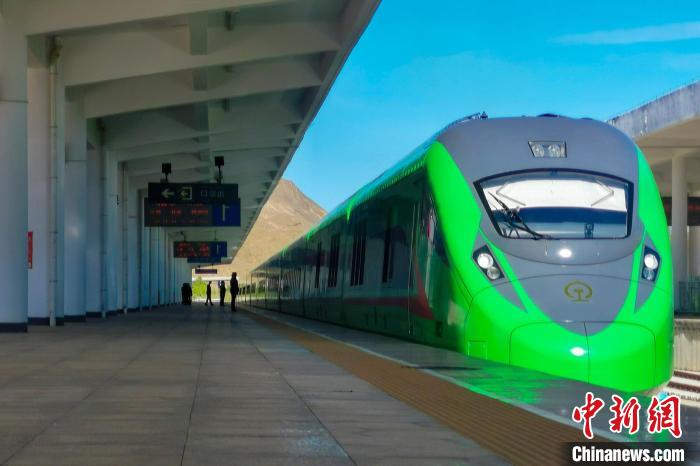 圖為2月21日藏歷新年初一,復(fù)興號(hào)動(dòng)車(chē)組抵達(dá)日喀則站。拉薩車(chē)務(wù)段 供圖