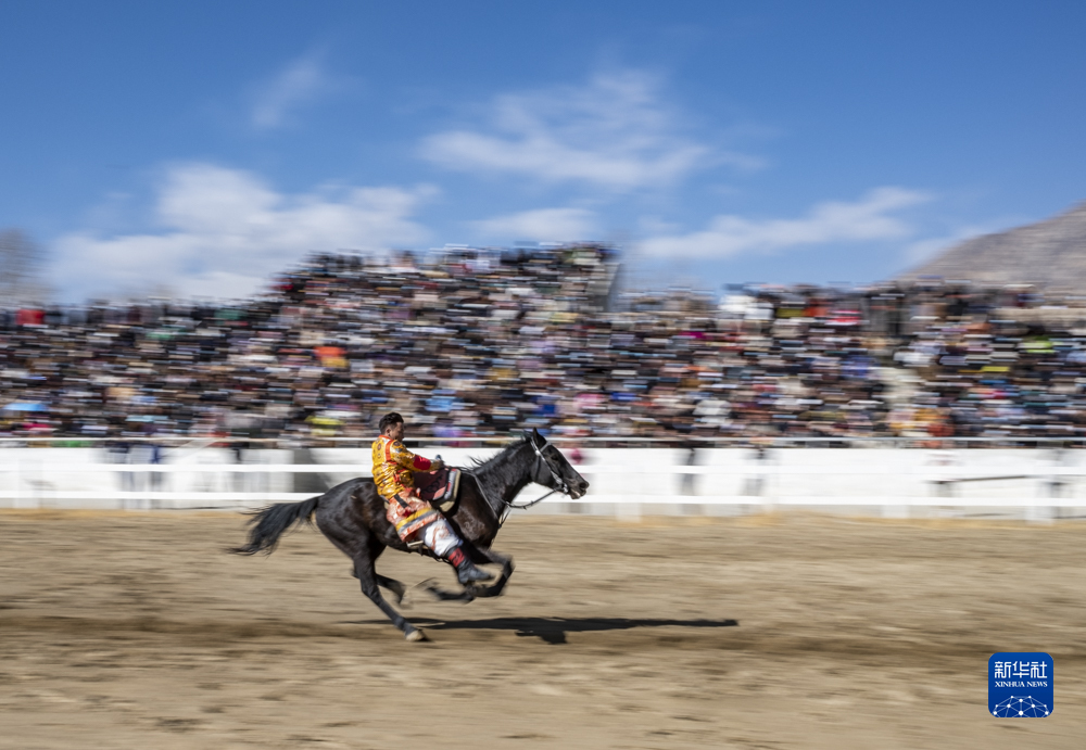2月23日,在拉薩賽馬場舉辦馬術表演已成為當?shù)貞c祝新年的傳統(tǒng),深受廣大群眾喜愛。騎手們英姿颯爽,為觀眾們帶來騎馬拾哈達、騎馬射箭等精彩表演。