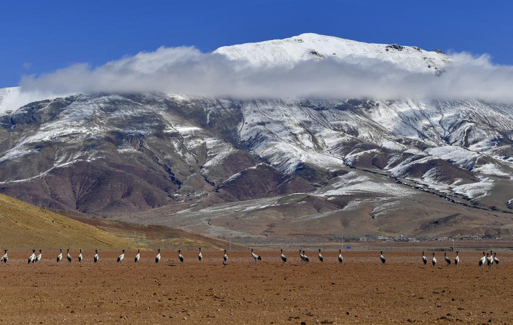黑頸鶴是國家一級(jí)保護(hù)動(dòng)物,主要棲息在海拔2500米至5000米的高原、草甸、沼澤地帶。拉薩北部的林周縣平均海拔約4200米,是黑頸鶴的主要越冬地之一。