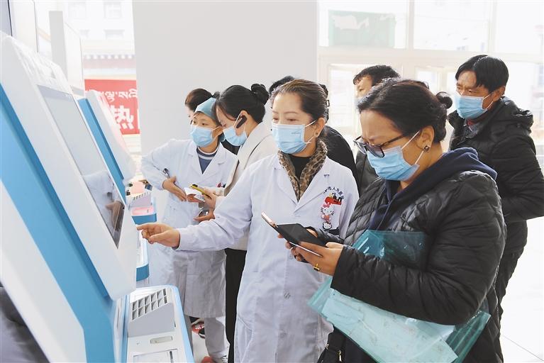 拉薩市人民醫(yī)院女醫(yī)務(wù)人員幫助患者家屬辦理業(yè)務(wù)。丹增群培 攝