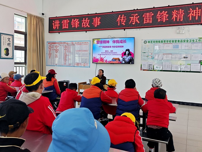 3月13日,西藏自治區(qū)林芝市特殊教育學校關工委組織開展“雷鋒精神 伴我成長”主題宣講活動,全校師生共91人參加。