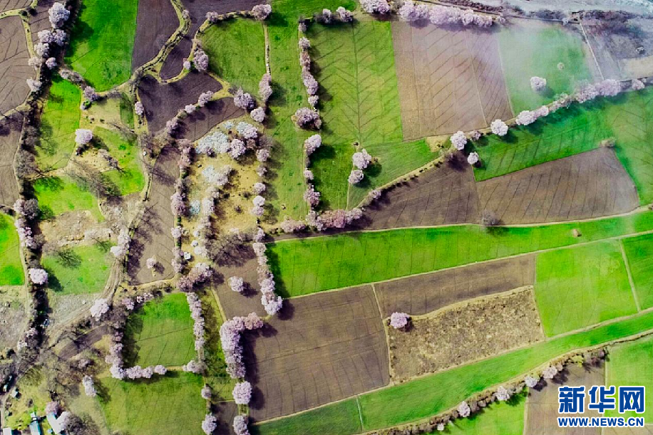 林芝市波密縣桃花谷美景(3月25日攝 無(wú)人機(jī)照片)。 新華網(wǎng) 旦增努布 攝