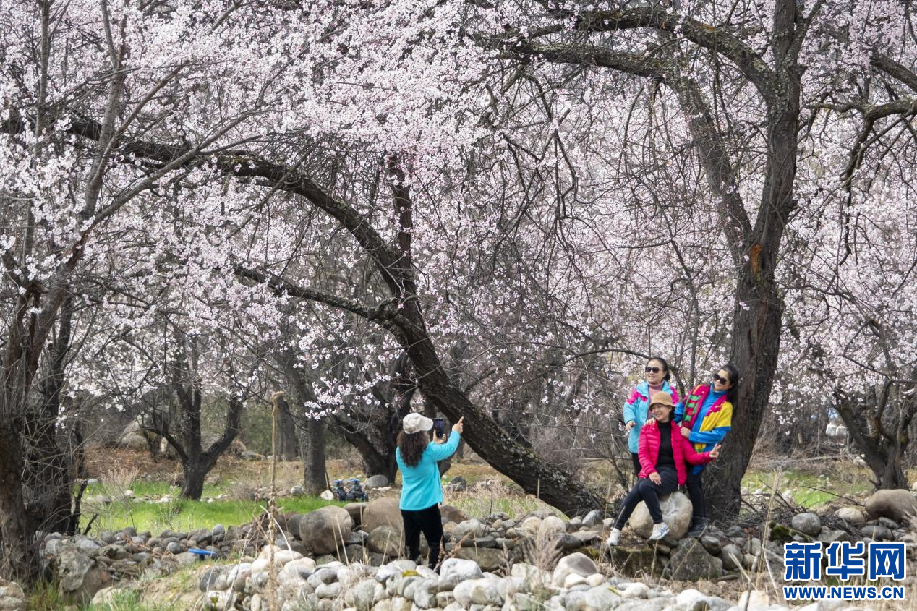 3月25日,游客在林芝市波密縣桃花谷合影留念。新華網(wǎng) 旦增努布 攝
