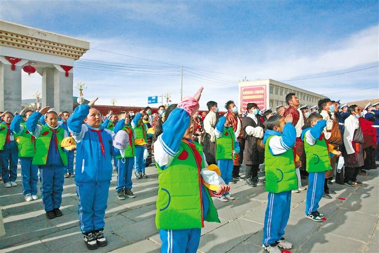 28日,西藏大學(xué)、拉薩市教育局組織學(xué)生開展“升國旗、唱國歌”活動(dòng),并觀看《復(fù)興之路》和《人格的力量——中國共產(chǎn)黨人的家國情懷》兩個(gè)直播課堂,革命先烈為實(shí)現(xiàn)國家解放和民族復(fù)興前仆后繼、視死如歸的英雄事跡深深打動(dòng)了每一名學(xué)生。西藏大學(xué)學(xué)生向秋雨說:“我們要以史為鑒,開創(chuàng)未來,扎實(shí)學(xué)好專業(yè)知識,維護(hù)祖國統(tǒng)一,鑄牢中華民族共同體意識,讓青春之花在祖國最需要的地方絢麗綻放?!?/p>
