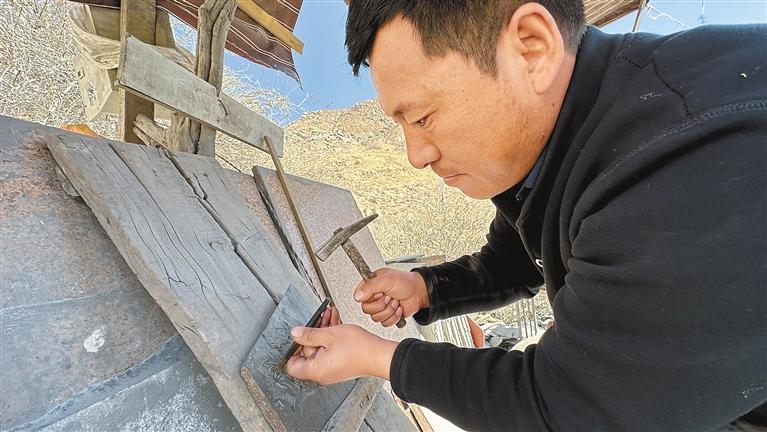 藏歷新年期間,拉薩市在宗角祿康公園舉辦的“非遺好物展”上,頒發(fā)了第六批市級(jí)非物質(zhì)文化遺產(chǎn)代表性項(xiàng)目證書。入選此次代表性項(xiàng)目的傳統(tǒng)石刻技藝傳承人桑周才仁,特別激動(dòng)地接過(guò)了牌匾和證書,心中的喜悅溢于言表?!艾F(xiàn)在黨和政府的政策太給力了,提高了技能人才待遇水平和社會(huì)地位,能夠得到這份認(rèn)證心里十分感動(dòng),這是對(duì)我20多年堅(jiān)守傳統(tǒng)石刻技藝的一種肯定和鼓勵(lì),以后我會(huì)更加努力,堅(jiān)持傳統(tǒng)和創(chuàng)新相結(jié)合,也希望更多年輕人加入到非遺傳承中,把這門技藝發(fā)揚(yáng)光大?!?/p>