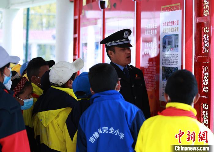 27日下午,60多名學(xué)生在老師帶領(lǐng)下走進吉隆邊檢站警營,師生在移民管理警察引導(dǎo)下參觀警營文化長廊、警史館和閱覽室,觀摩警棍、盾牌、槍支等警用裝備,觀看西藏發(fā)展變化教育片,聆聽新舊西藏對比相關(guān)故事。