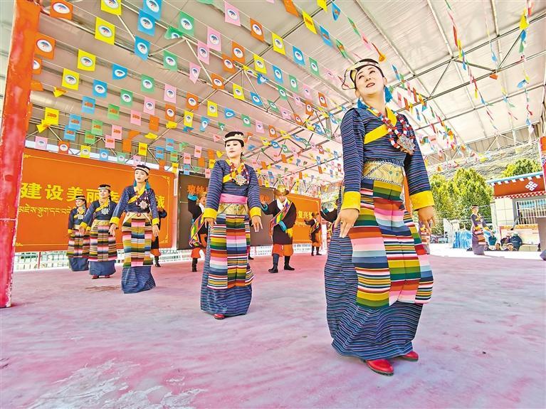 圖為瓊結(jié)縣藝術(shù)團(tuán)下鄉(xiāng)演出活動中,歌舞《幸福小康》表演場景。記者 巴桑旺姆 攝