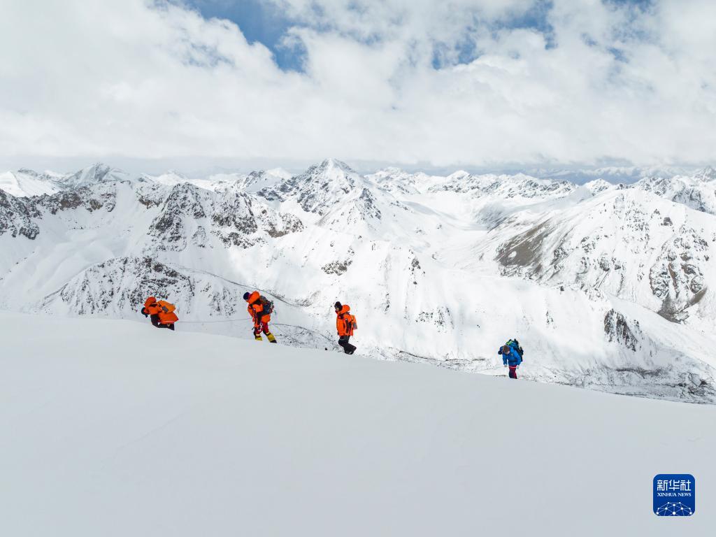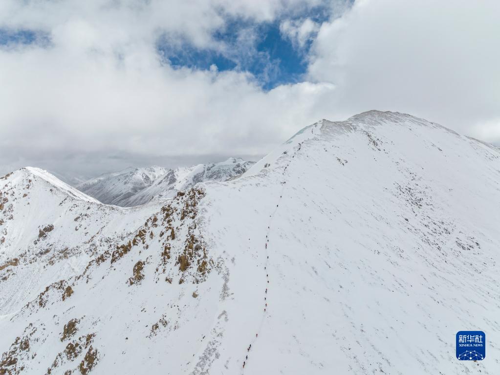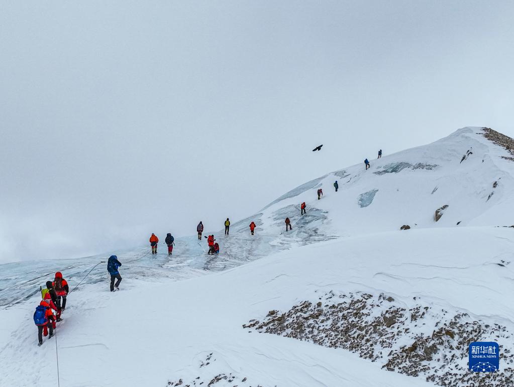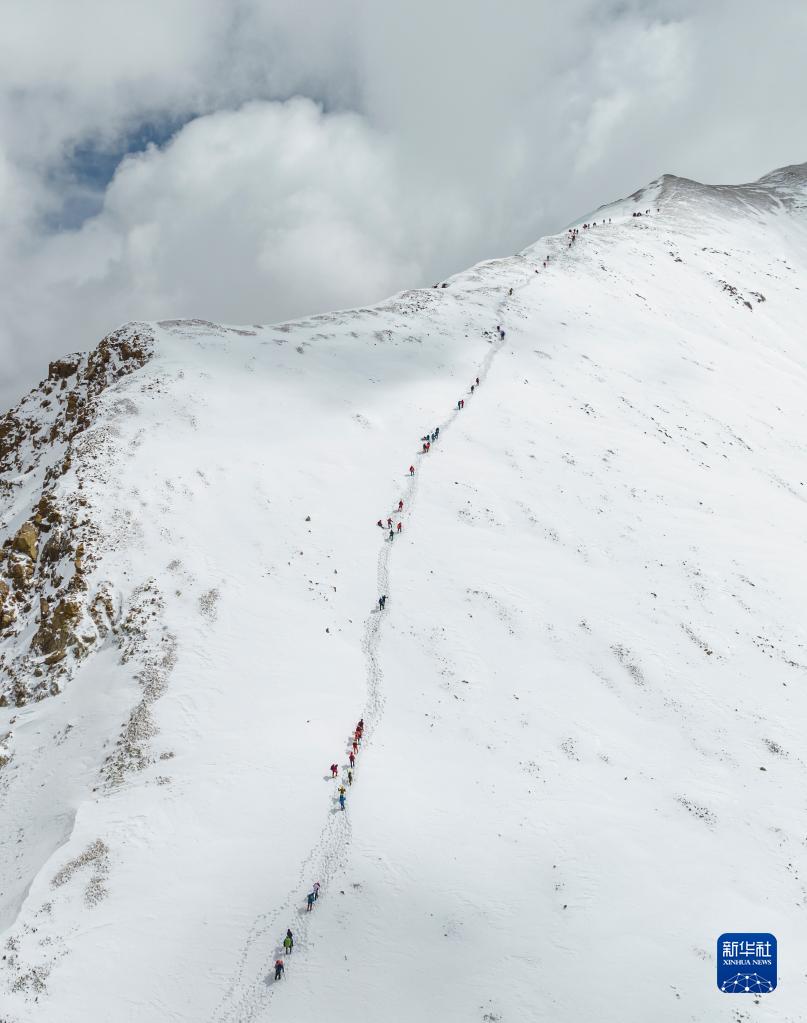 5月3日,登山愛好者正在向海拔6010米的洛堆峰峰頂進(jìn)發(fā)(無人機(jī)照片)。新華社記者 孫非 攝