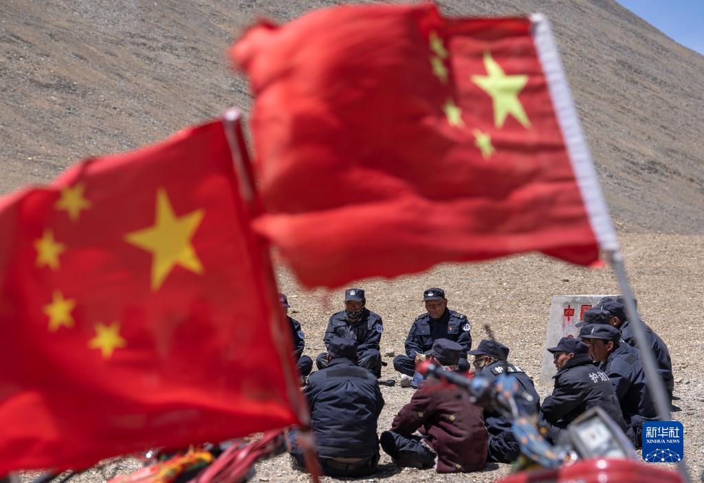6月2日,在33號界樁處,護(hù)邊聯(lián)防隊(duì)隊(duì)員列隊(duì)準(zhǔn)備分頭巡邏。新華社記者 晉美多吉 攝