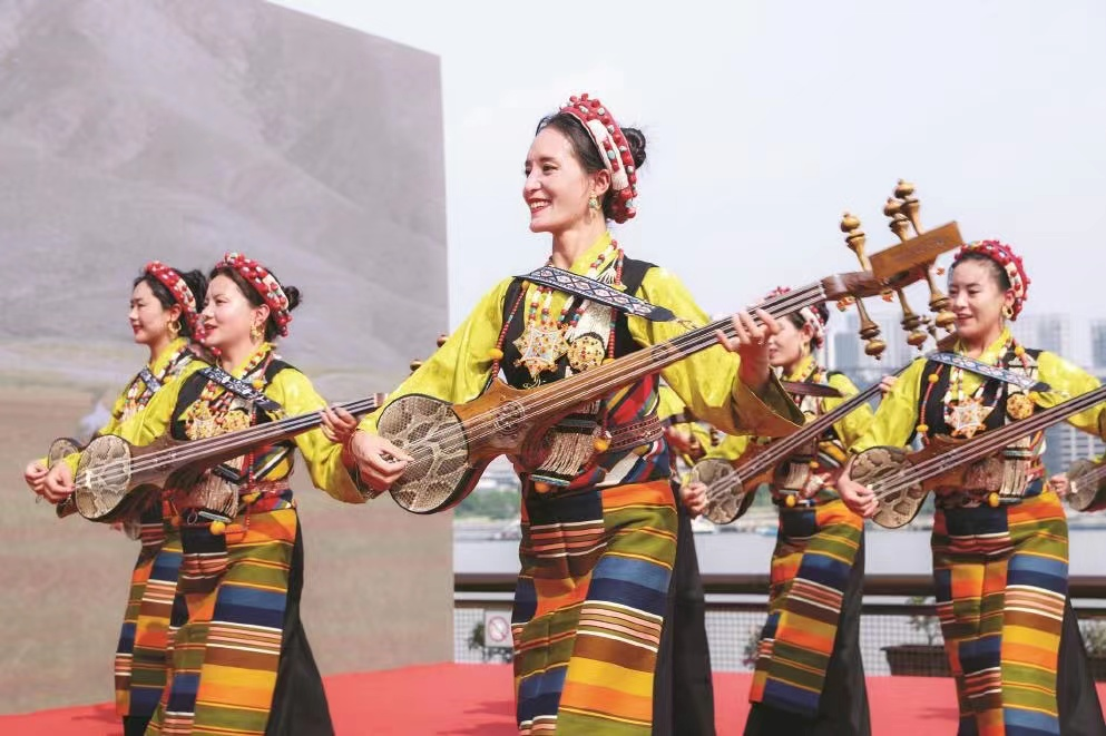 “遇見|雅江情濱江意·滬藏文化交流”演出現(xiàn)場 新華網(wǎng)發(fā) (活動(dòng)方供圖)