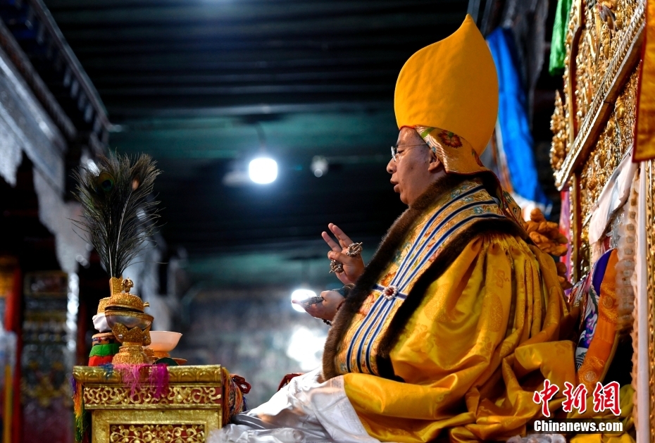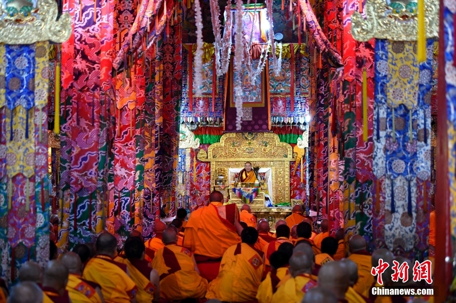 圖為6月12日,班禪在西藏昌都強巴林寺禮佛講經(jīng)。