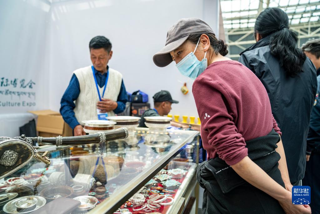 在藏博會上,消費(fèi)者觀看琳瑯滿目的西藏特產(chǎn)(6月17日攝)。新華社記者 張汝鋒 攝