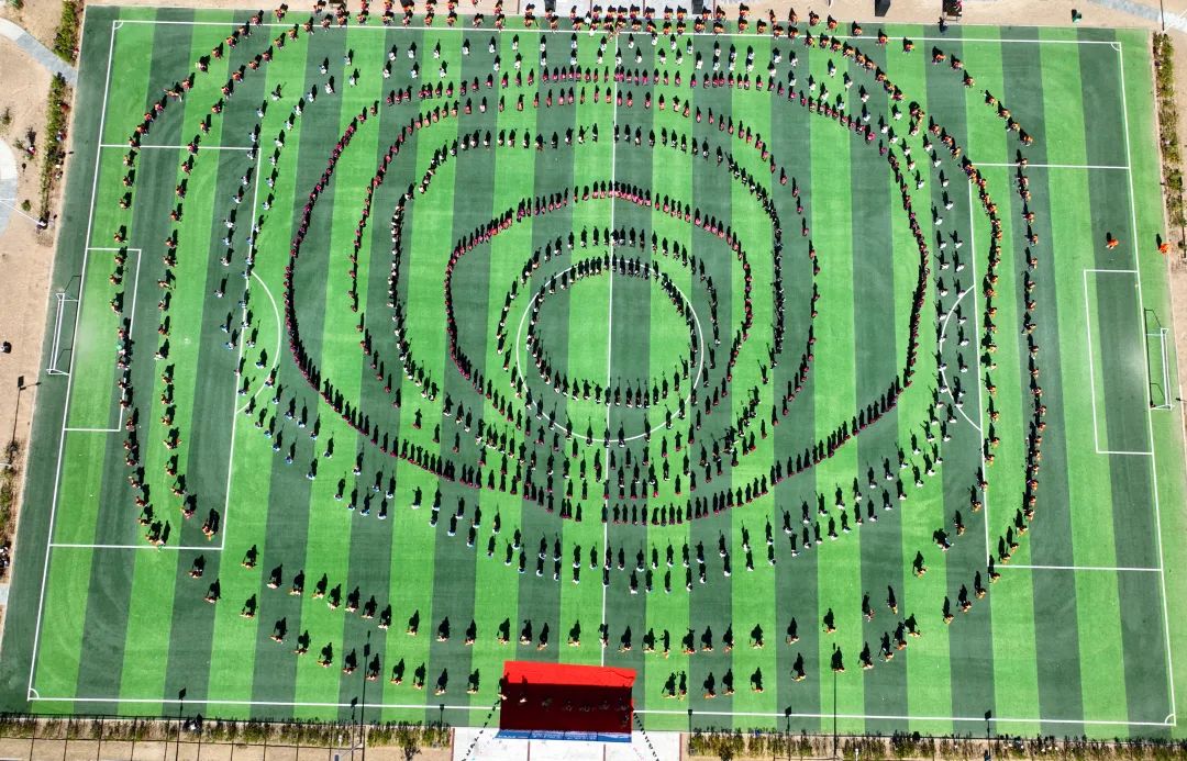 伴隨場上一陣強勁有力的鼓點響起,來自各縣的演員身著節(jié)日盛裝,堆諧、洛諧、司馬卓等民間歌舞風格獨特、歷久彌新,在幾層大半圓橫排式的流動陣型中慢慢變換成太陽、月亮、滿天星等陣型。