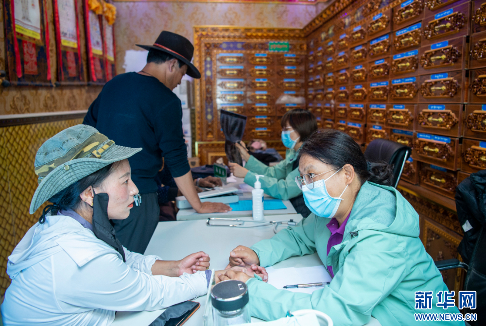 7月13日,來自北京安貞醫(yī)院的醫(yī)生在西藏丁青縣孜珠寺為僧人義診。新華網(wǎng) 旦增努布 攝