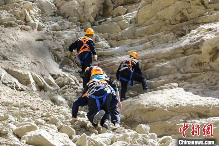 近日,在西藏山南雅魯藏布江畔的拉林鐵路安拉隧道口山崖上,中國(guó)鐵路青藏集團(tuán)有限公司拉薩基礎(chǔ)設(shè)施段加查橋隧工區(qū)的職工們對(duì)山體開展巡視,他們一邊攀爬,一邊小心用手錘敲擊巖石,對(duì)有空虛、容易滑落的石塊用自噴漆進(jìn)行標(biāo)記。遠(yuǎn)遠(yuǎn)看去,一群人猶如壁虎穿梭于懸崖峭壁之上。